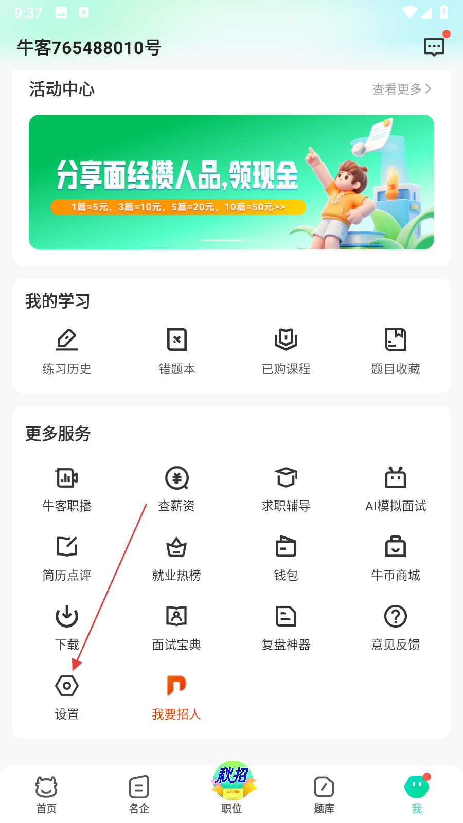 2、在個人中心頁面的更多服務(wù)區(qū)域,點(diǎn)擊設(shè)置選項(xiàng),進(jìn)入設(shè)置界面。