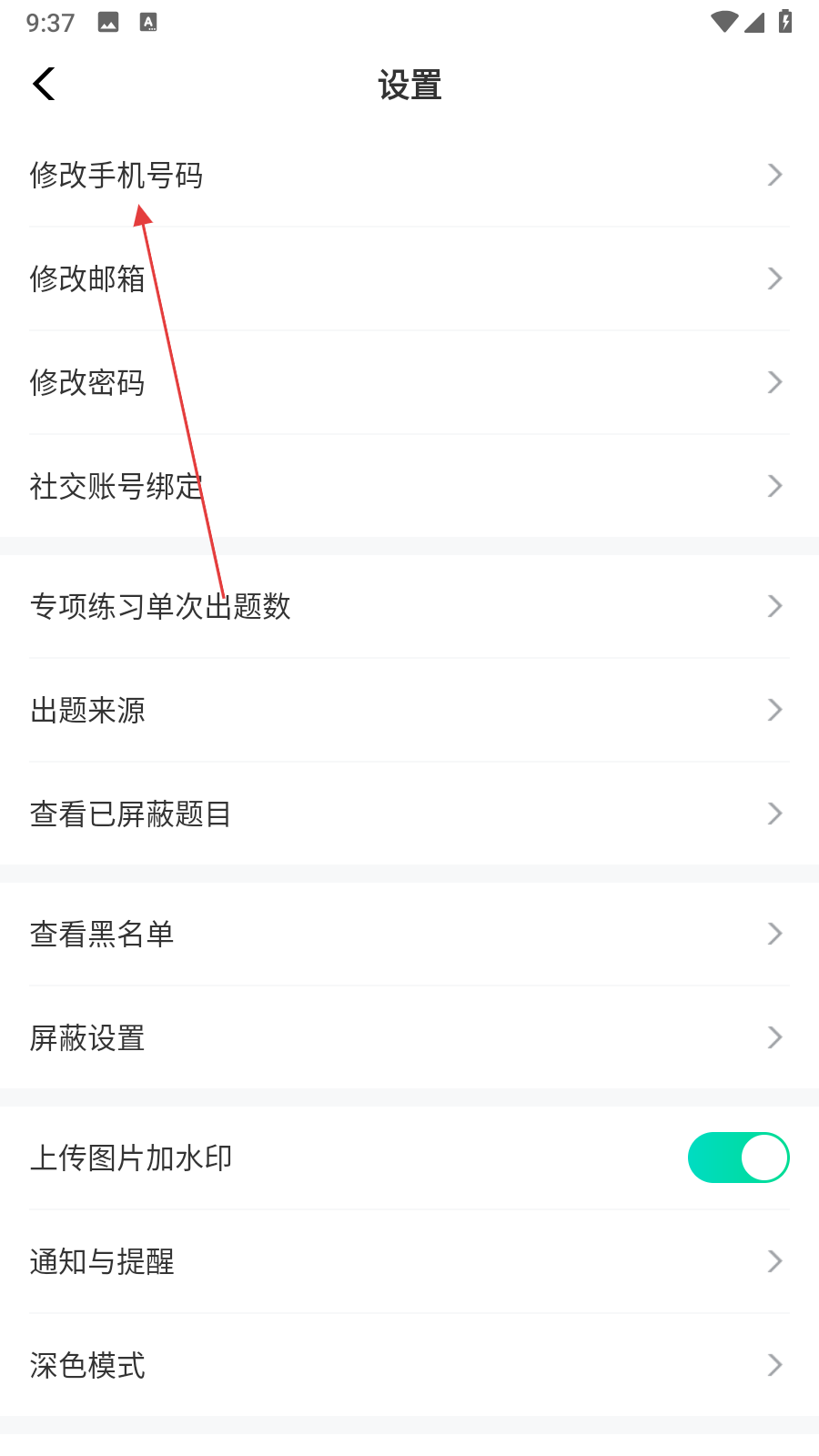3、在設(shè)置界面中,點(diǎn)擊修改手機(jī)號碼選項(xiàng),進(jìn)入修改手機(jī)號碼頁面。