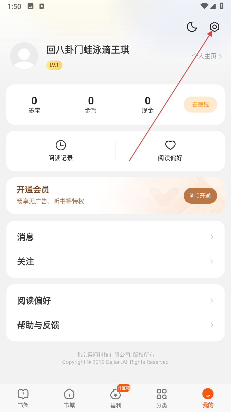 2、在個人頁面中,點擊右上角的設置圖標,進入設置界面。