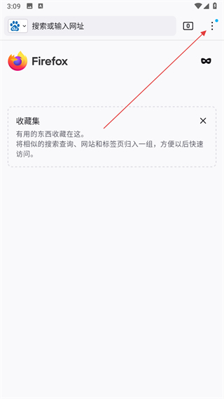 1、打開火狐瀏覽器,進(jìn)入主頁后,點(diǎn)擊右上角的三點(diǎn)菜單按鈕。