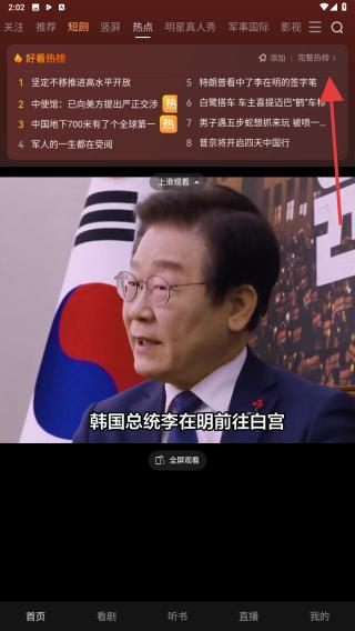 2、在熱榜頁(yè)面會(huì)自動(dòng)播放熱榜相關(guān)的視頻,若要查看數(shù)據(jù)點(diǎn)擊完整的熱榜即可跳轉(zhuǎn)到該頁(yè)面。