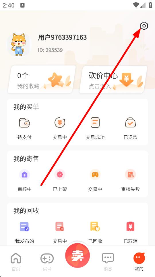 2、在我的界面中,點擊右上角的設(shè)置圖標(biāo)。