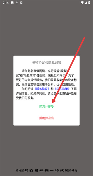 1、點擊“服務(wù)協(xié)議和隱私政策”彈窗的“同意并接受”,進入APP主界面。