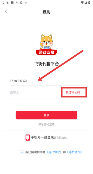 3、登錄頁輸入手機號,點擊“發(fā)送驗證碼”,獲取短信驗證碼。