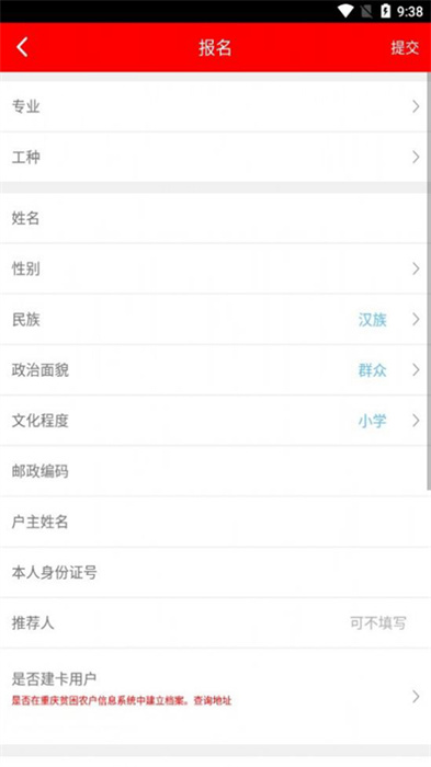 4、進(jìn)入到軟件之后,找到報(bào)名的板塊,并填寫好具體的信息,就能點(diǎn)擊右上角的提交。