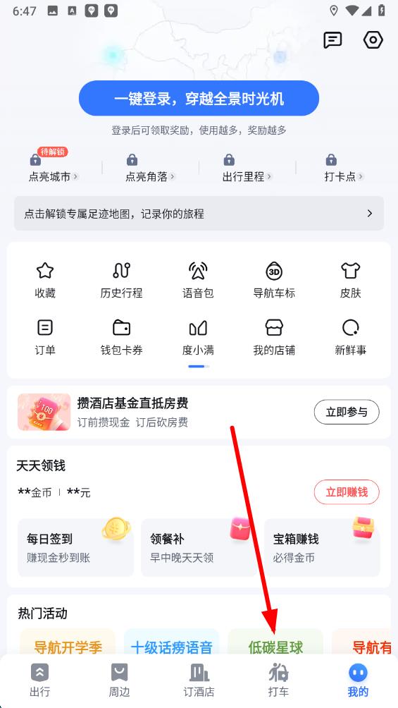 1、打開百度地圖應(yīng)用,點擊底部導(dǎo)航欄中的打車選項,進(jìn)入百度地圖打車界面。
