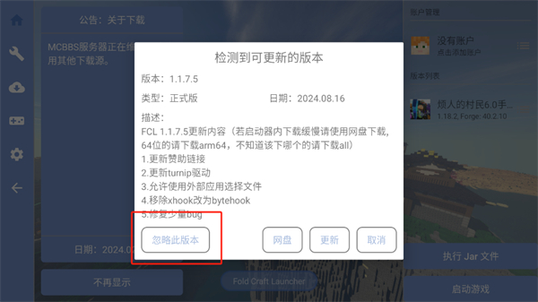3、當安裝好所有的插件之后,可能會出現(xiàn)一個版本更新的提示框,可以進行更新,也可以選擇忽略;