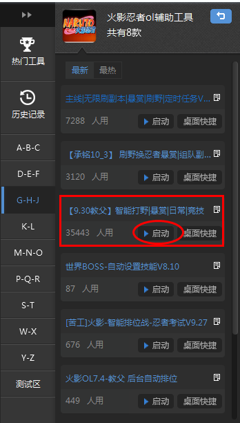 4.在火影忍者OL輔助工具中“啟動”“火影忍者ol【教父】打野|懸賞|副本|競技場”
