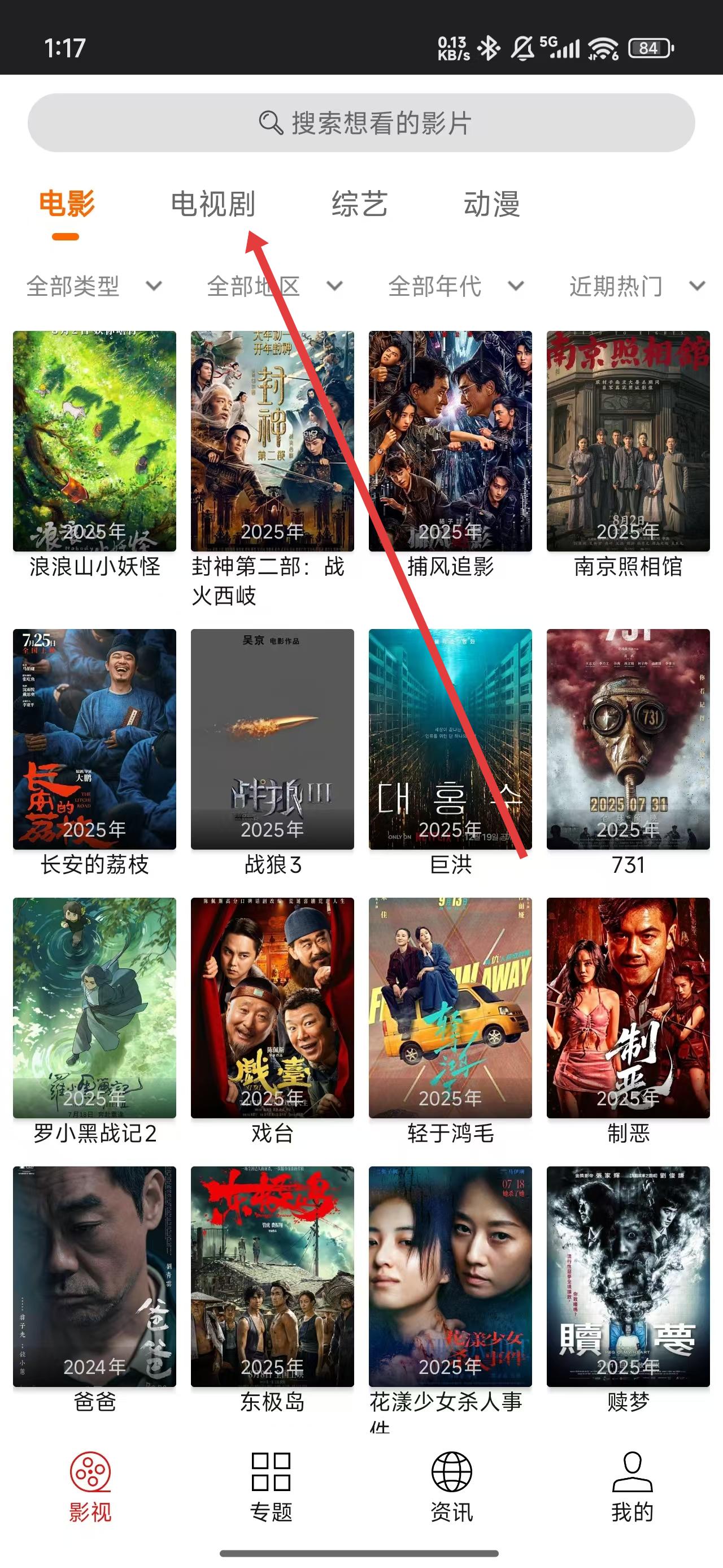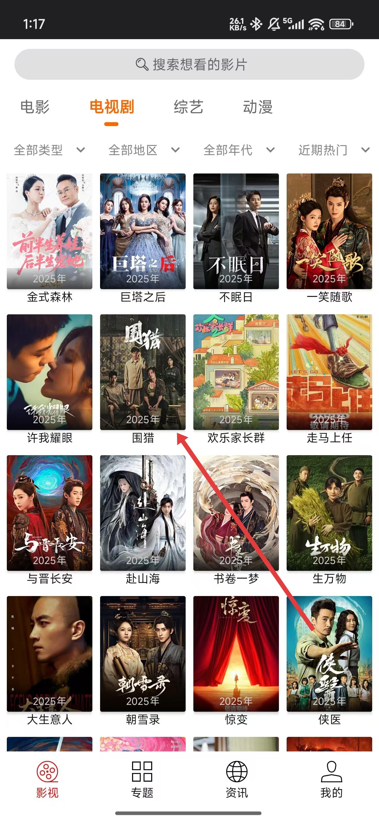 1、在進(jìn)入到應(yīng)用首頁中,可以點(diǎn)擊上方電視劇按鈕,查看電視劇相關(guān)內(nèi)容。