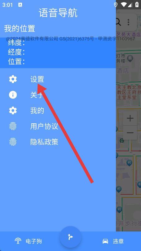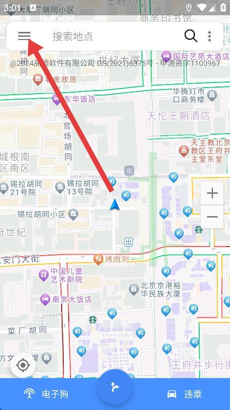 1、打開語音導(dǎo)航,在地圖主界面點(diǎn)擊左上角的菜單圖標(biāo)。