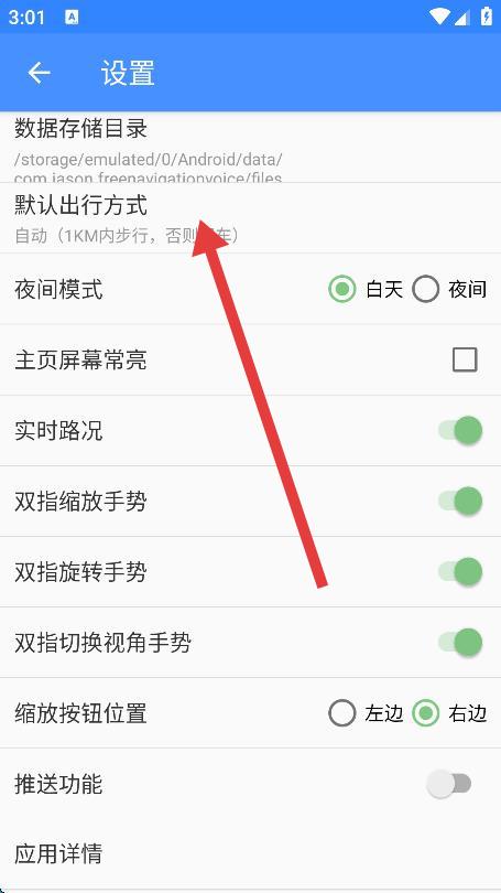 3、進(jìn)入設(shè)置頁面后,找到默認(rèn)出行方式選項并點(diǎn)擊。