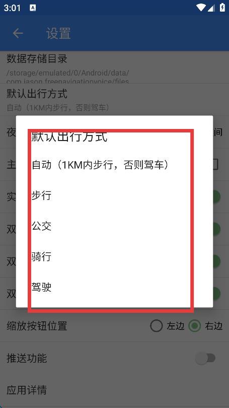 4、在彈出的選擇框里,點(diǎn)擊選擇默認(rèn)出行方式,即可完成設(shè)置。