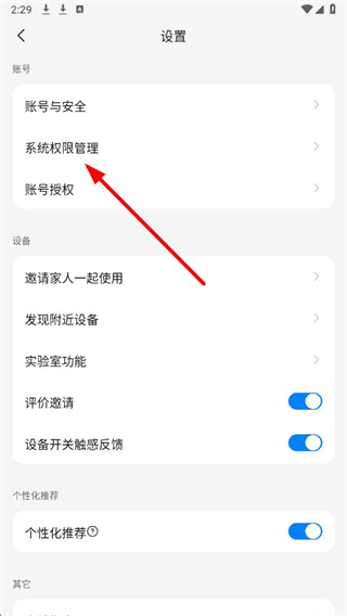 3、在設(shè)置界面中,找到系統(tǒng)權(quán)限管理選項(xiàng)并點(diǎn)擊,進(jìn)入系統(tǒng)權(quán)限管理頁(yè)面。