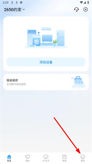 1、在海爾智家app界面點(diǎn)擊我的選項(xiàng),進(jìn)入個(gè)人頁(yè)面。