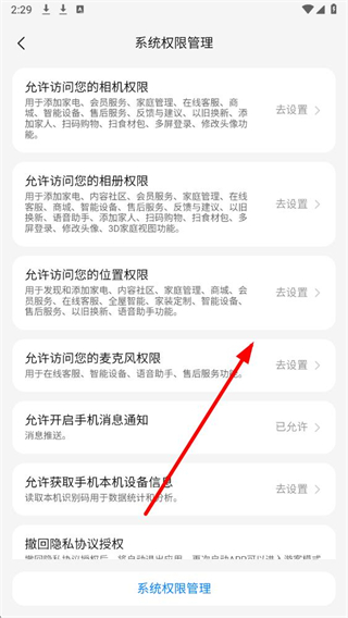4、在系統(tǒng)權(quán)限管理頁(yè)面,針對(duì)不同權(quán)限,點(diǎn)擊對(duì)應(yīng)項(xiàng)的去設(shè)置,即可調(diào)整該權(quán)限的授權(quán)狀態(tài),完成權(quán)限管理。