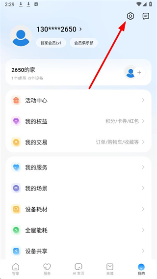 1、打開海爾智家APP,點(diǎn)擊右下角我的進(jìn)入個(gè)人頁(yè)面。
