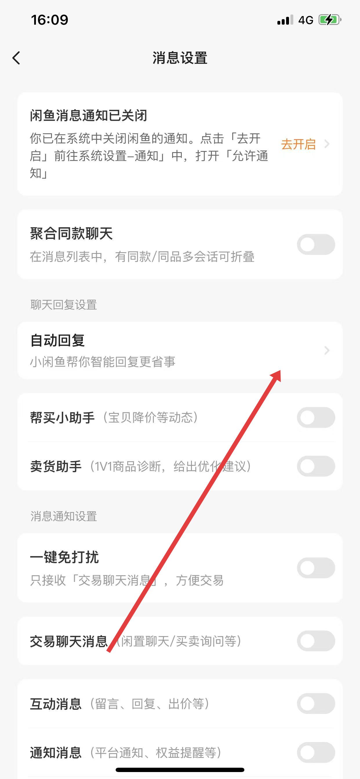 2、進入消息設置頁面,選擇自動回復,進入智能回復設置頁。