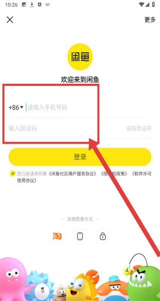 3、跳轉到登錄頁面中時,需點擊輸入框填寫手機號以及獲取到的驗證碼信息。