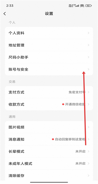 1、在設置頁面中,可以點擊賬號與安全選項,進行相關設置操作。