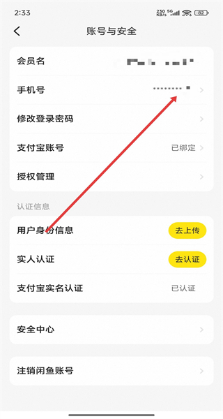 2、進入到賬號與安全頁面后,點擊手機號選項,準備進行修改手機號操作。