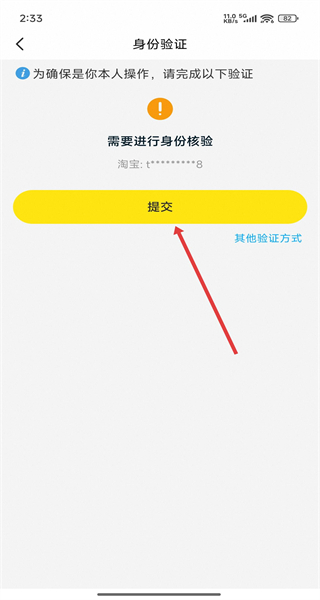 3、在進行修改操作前,需完成身份驗證,點擊提交按鈕即可完成淘寶賬號驗證。
