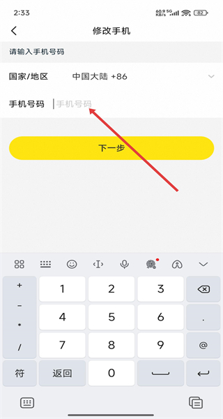 4、點擊輸入框填寫手機號碼,點擊下一步,在填寫獲取到的驗證碼后,即可完成修改操作。