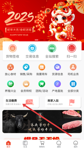 1、首先打開應(yīng)用進(jìn)入首頁,找到并點(diǎn)擊生活繳費(fèi)板塊,即可開啟生活費(fèi)用繳納相關(guān)流程。