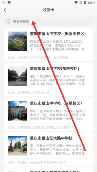 3、進(jìn)入校園卡頁面后,通過上方按具體學(xué)校名稱搜索欄,輸入你的學(xué)校名稱查找對(duì)應(yīng)的校園卡繳費(fèi)入口。