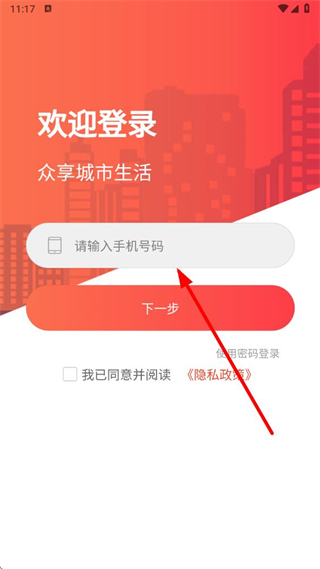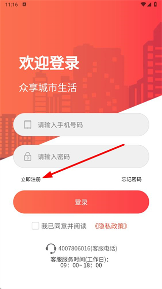 3、在登錄頁面點(diǎn)擊立即注冊(cè)選項(xiàng),進(jìn)入注冊(cè)手機(jī)號(hào)輸入頁面。