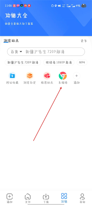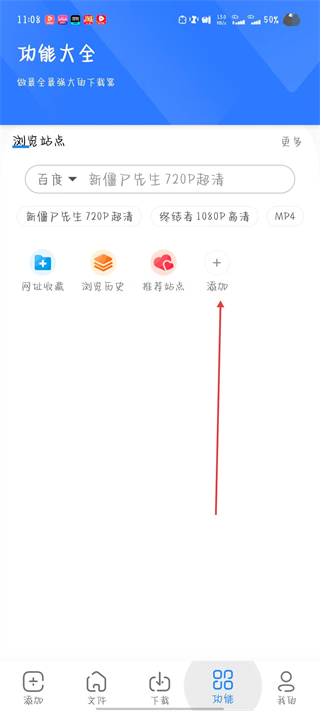 2、在功能大全頁面,點(diǎn)擊添加按鈕。