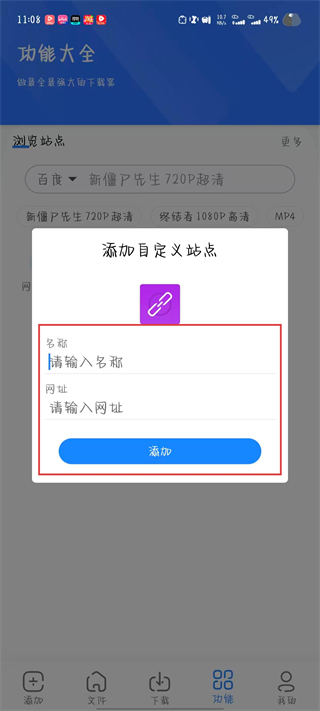 3、輸入名稱和網(wǎng)址,點(diǎn)擊添加按鈕。