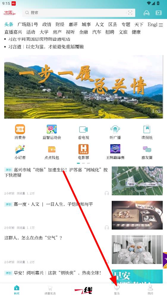 1、在打開讀嘉APP后,點(diǎn)擊底部導(dǎo)航欄中的服務(wù)選項,進(jìn)入服務(wù)界面。