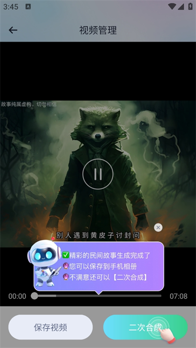 5、等待一段時(shí)間將會(huì)自動(dòng)生成視頻的內(nèi)容結(jié)果,線上直接預(yù)覽生成的內(nèi)容可以直接保存,或者選擇二次創(chuàng)作更細(xì)致。