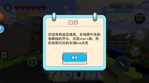 2、此時玩家將會進入到游戲內,會出現(xiàn)一個彈窗提示界面,界面上會說明游戲的具體玩法,玩家看完后即可點擊【確定】來進行關閉;