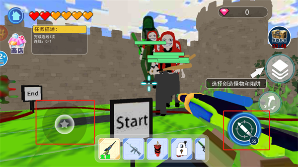3、順利的開啟游戲后,玩家將可以點擊屏幕左下方的移動按鈕來進行角色的移動,并點擊右下方的按鈕來進行射擊,操作十分的簡單;
