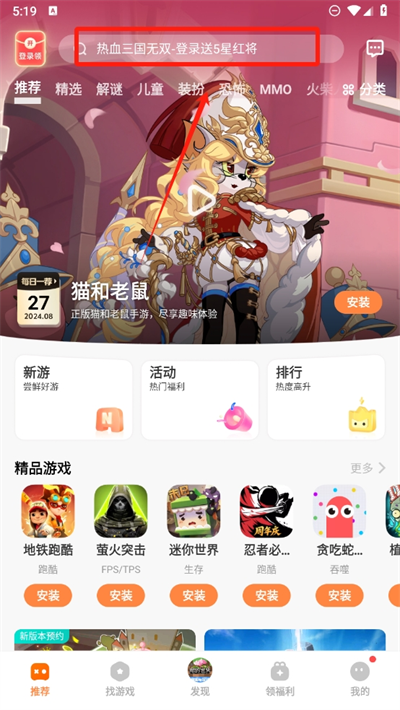 1、進入軟件后將會在最上方看到搜索欄目,在搜索欄目中輸入想要找的游戲;