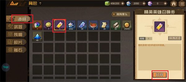 2、還有多種不同的道具等待著玩家們的使用,可以點(diǎn)擊【道具】按鈕,以進(jìn)行道具的選擇,選擇好之后可以點(diǎn)擊右下角的【打開】按鈕;
