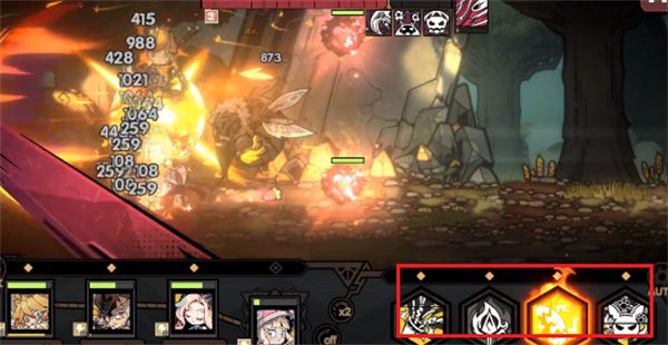 6、戰(zhàn)斗過程中將需要點(diǎn)擊屏幕右下方的按鈕來進(jìn)行戰(zhàn)斗競(jìng)技,不同的按鈕有不同的戰(zhàn)斗效果。