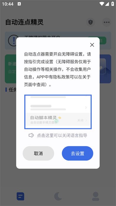 自動連點精靈是一款十分好用的連續(xù)點擊屏幕的軟件,這款軟件里面擁有十分豐富的功能內(nèi)容,隨時隨地的打開軟件就能設(shè)置連續(xù)點擊的操作,全部都是一些非常實用的功能內(nèi)容供用戶們?nèi)ミM行使用,使用自己所需要使用的功能內(nèi)容就可以了,操作起來非常的簡單輕松,不需要任何復(fù)雜繁瑣的操作就能完成連續(xù)點擊的設(shè)置,不用任何的權(quán)限就能輕輕松松的幫助用戶們實現(xiàn)自動化點擊的屏幕,歡迎有需要進行連續(xù)點擊操作的用戶們?nèi)ミM行下載體驗的操作。