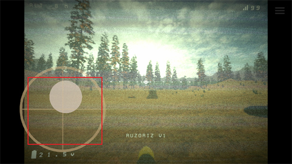 2、此時玩家將會順利的進入到廣袤的場景之中,可以點擊屏幕左下角的圓形按鈕來進行無人機的移動,如向上或者是向下等;