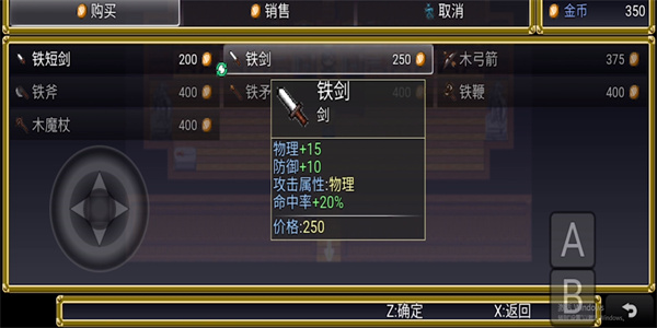 3、鐵劍、魔杖、斧頭等等武器的選擇,根據(jù)自己的戰(zhàn)斗情況進(jìn)行選擇,不同武器之間的攻擊力都不同,且其消耗品的金幣也不同,根據(jù)所擁有的金幣進(jìn)行購買;