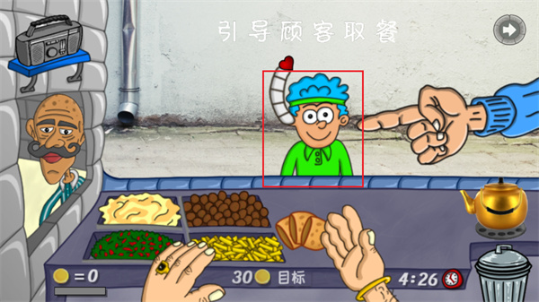 6、點擊客人的位置,以進行客人食物的制作,并快速的將食物提供給客人。