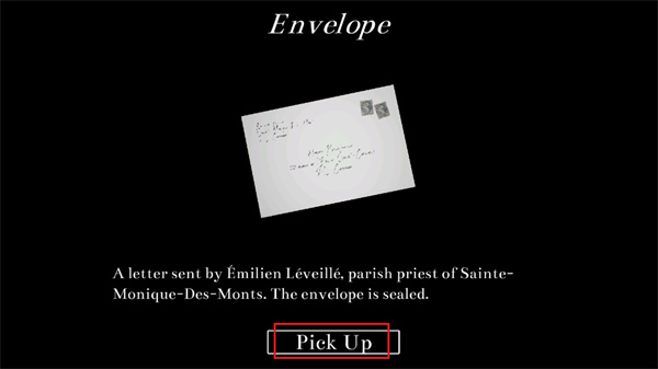 6、在正式的拿取前,將會出現(xiàn)一個(gè)彈窗提示,點(diǎn)擊提示上的【pick up】按鈕,以進(jìn)行信封的拿起。