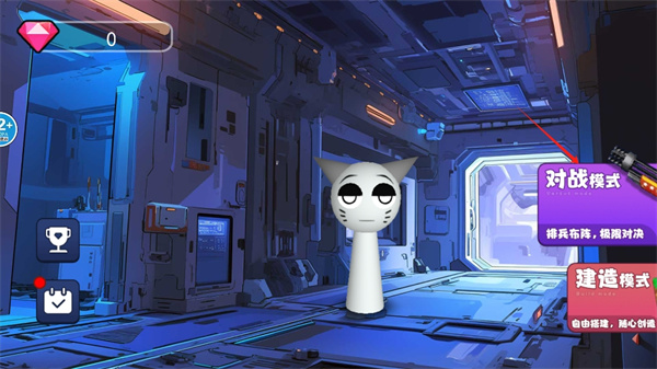 1、來到一個太空艙背景般的世界之中,與這個灰色毫無表情的小人一起加入對戰(zhàn)或者建造模式之中,為自己創(chuàng)建一個冒險世界,看著小藍、小粉、小黃等敵人在你的射擊之下被擊敗;