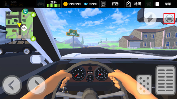 6、還可以點(diǎn)擊屏幕右上角紅色框框內(nèi)的按鈕,以此來進(jìn)行駕駛視角的轉(zhuǎn)換。