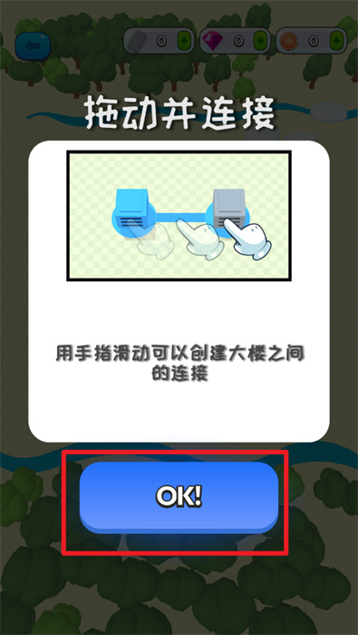 4、隨后游戲?qū)菔緮嚅_大樓連接的方式,也是通過手指的滑動操作來進行實現(xiàn);