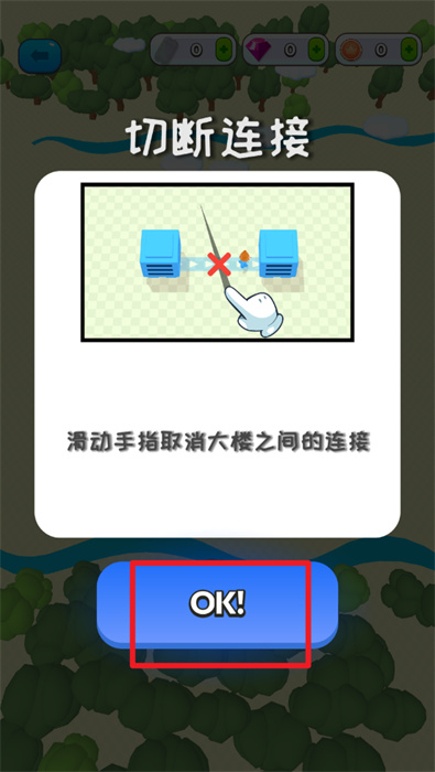 1、進入到游戲的場景內(nèi)之后,將會有一個相關(guān)的提示給到玩家,可以通過滑動手指來進行大樓的連接;