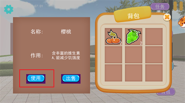 7、此時將會出現(xiàn)櫻桃的相關(guān)信息,可以點擊【使用】按鈕來進(jìn)行櫻桃的食用,以此來補充體力。