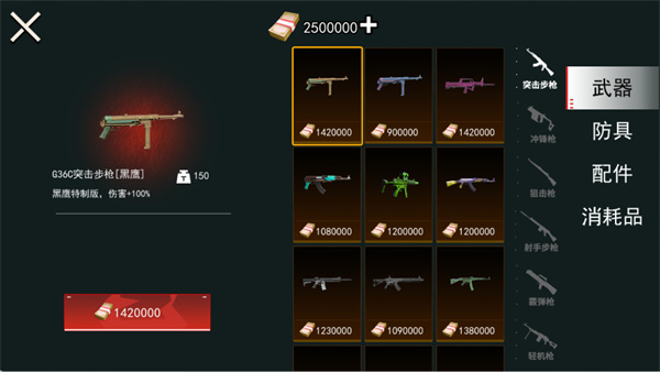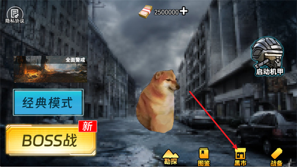2、首先要進(jìn)入黑市用初始資金購買裝備強(qiáng)化修狗;