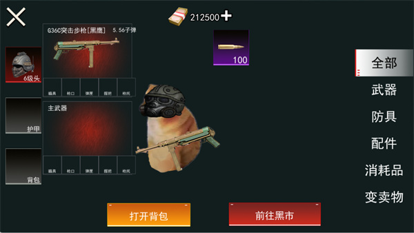 6、然后進(jìn)入戰(zhàn)備系統(tǒng),將子彈放入背包,頭盔和槍械都裝備好;